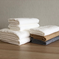 タオルを白く仕上げるために。様々な薬品類と膨大なエネルギーと水を消費していた従来の加工方法を見直し、天然抽出成分の薬剤と食品添加物に指定された薬剤に限定して仕上げる・・・ 「Natural Environment Tenderness」 NET加工